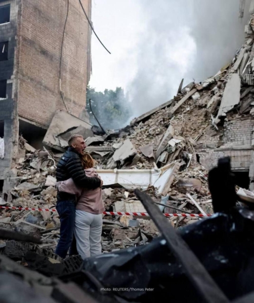 Нагадаємо, що пронизливі фото з Києва, на якому подружжя стоїть перед руїнами багатоповерхівки, стало символом неймовірного болю, відчаю та несправедливості, які переживає Україна внаслідок російської агресії. Ці фото миттєво облетіло соціальні мережі та світові ЗМІ, ставши ще одним нагадуванням про жахливі наслідки війни для мирних українців.