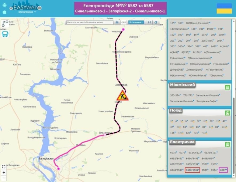 Електропоїзд №6582 Запоріжжя-2 — Синельникове-1 буде прямувати за маршрутом Запоріжжя-2 — Вільнянськ. На ділянці Вільнянськ — Синельникове-1 скасовано.