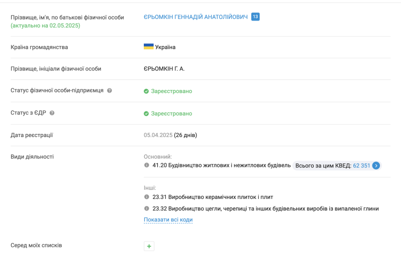 Таким чином, доволі великий підряд отримало зовсім нове підприємство. На Геннадія Єрьомкіна зареєстровано ще два підприємства. Одне займається оптовою торгівлею залізними виробами, друге відведенням та очищенням стічних вод. В тендерах брало участь лише «НПП Укрпромресурс», основний вид діяльності якого торгівля, але закупівлі стосувались ремонтів. З 2016 року підприємство Єрьомкіна отримало майже дев’ять мільйонів гривень.