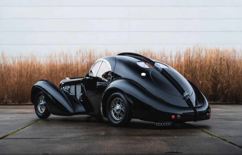 Знамените обтічне купе Bugatti 57SC Atlantic відтворили до найменших деталей. Авто вирізняється авангардним обтічним дизайном, а його двері відкриваються проти руху.