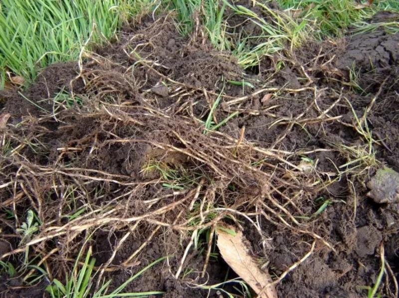 - Коренева частина. Кореневище проникаюче в грунтову частину яке має розгалужену систему, на коренях є брунькова частина, яка дає приріст нових пагонів.