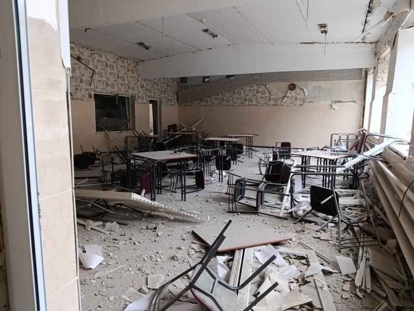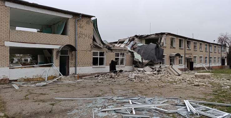 У будівлі інтернату зруйновані дах, перекриття, стіни, вибиті усі вікна та двері.
