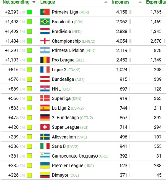 Португальська Примейра утримує лідерство і серед футбольних ліг світу. Доходи турніру від трансферної діяльності за 10 років становили майже три мільярди євро. Це вдвічі більше, ніж аналогічні показники бразильської Серії А та нідерландської Ередивізі.