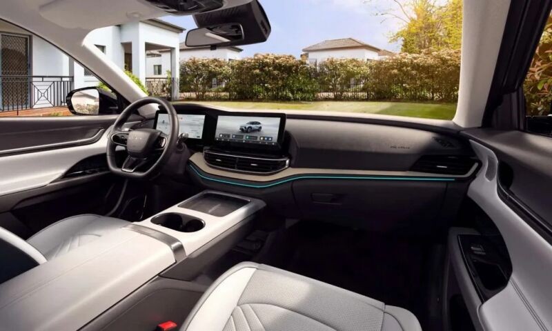 У салоні Chery Tiggo 6 встановлено два 12,3-дюймових дисплеї. Електрокросовер має 386-літровий задній та 40-літровий передній багажники.