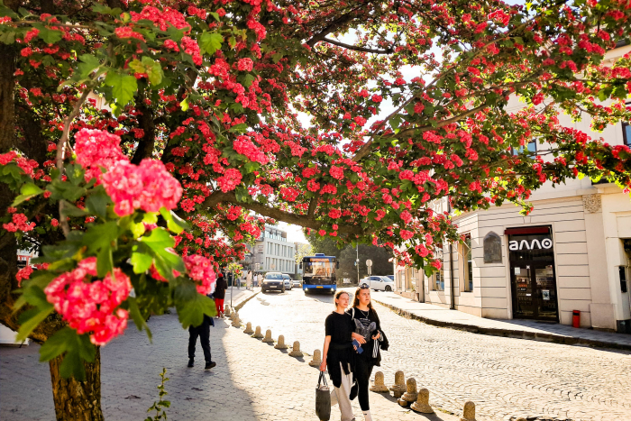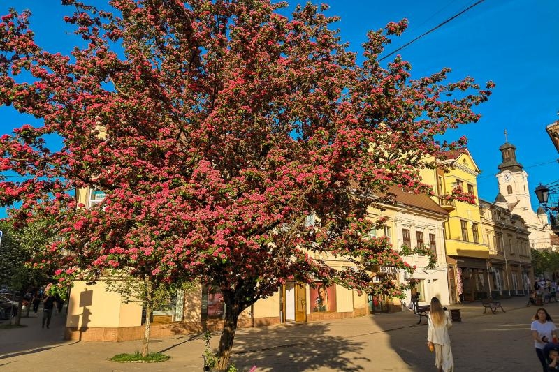 Глід в Ужгороді — не просто білий, а рожевий, мов акварельний штрих весни. Дерева зараз нагадують витончені квіткові хмари, що несподівано з’явилися у дворах, на вулицях. Він не гучний, як сакура, але в ньому є особлива ніжність і спокій. Цей рожевий глід — мов післяслово до сакурового цвітіння, ніжне продовження весняної казки, яка ще триває в Ужгороді.