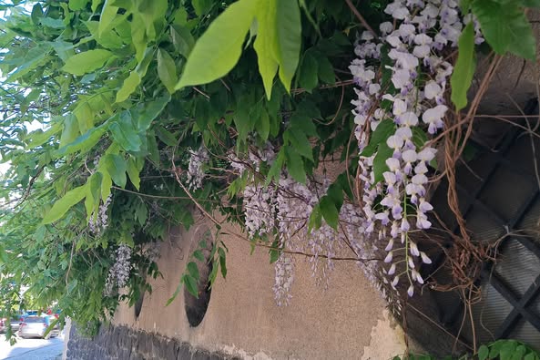 А гліцинія — це вже справжня поезія: довгі грона квітів спадають з фасадів будинків, огорож, мов фіолетові струмки. І пахне вона так, що хочеться залишитися поруч трохи довше.