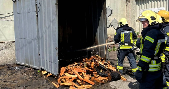 З’ясувалося, що в металевому контейнері горять дрова. Рятувальники оперативно приборкали займання (час ліквідації — 13:02).