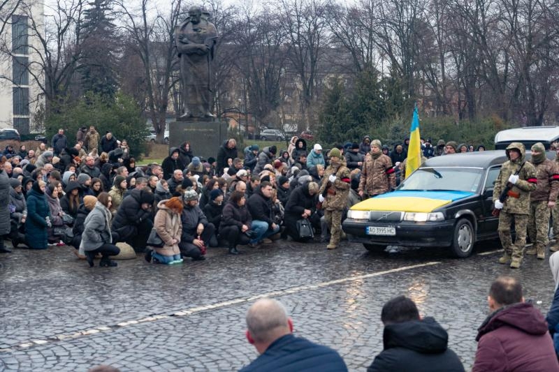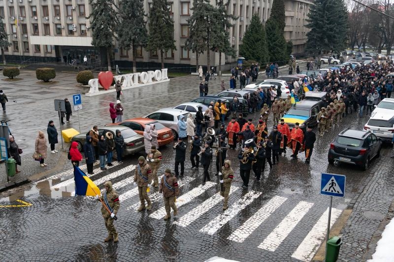 Прощалися із Героєм на площі Народній. Віддати шану воїну прийшло багато містян, рідні та друзі, колеги-освітяни, школярі, заступник міського голови Ужгорода Іван Завидняк, керуючий справами виконкому міськради Василь Пинзеник, військові.