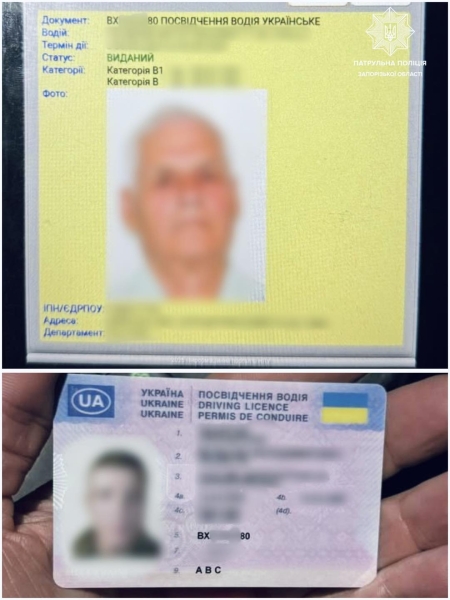 Днями у Запоріжжі чоловік надав патрульним для перевірки підроблене водійське посвідчення.